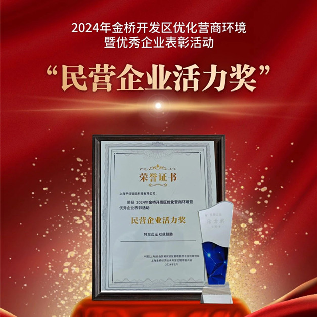 5月31日,金桥开发区汇聚了来自国内外的100多家优质企业代表,共同出席了“2024年金桥开发区优化营商环境暨优秀企业表彰活动”。在这场盛会上,甲佳智能凭借在智能化领域的创新贡献、对社会责任的积极履行以及在优化营商环境中所展现的不懈努力,荣获了“民营企业活力奖”。