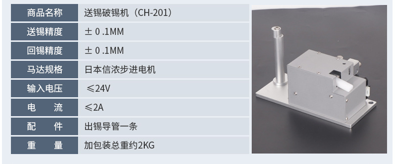 主要用于自动破锡,在锡丝上点状打孔后可以保持锡丝在内助原料的原状,既能消除无铅锡丝在高温时的飞溅,还能保证无铅锡线的、原有的焊接流动性,焊接质量非常好,锡丝内助焊料也不易露出,方便二次卷绕。